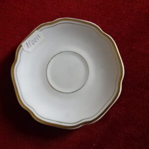 Hollóházi porcelán kávéscsésze alátét, vajszínű, arany szegélyes. Jókai