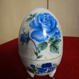 Porcelán tojás, három lábú, nem nyitható, magassága 9,5 cm. Jókai