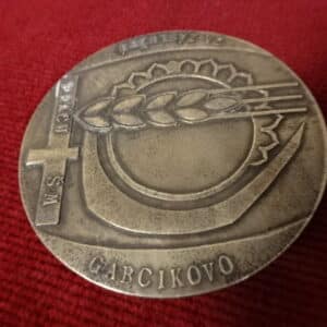 Bronz plakett, átmérője 6 cm. GABCIKOVO felirattal. Jókai