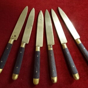 Sárgaréz deszertes késkészlet, 6 darabos. Hossza 15,5 cm. Jókai
