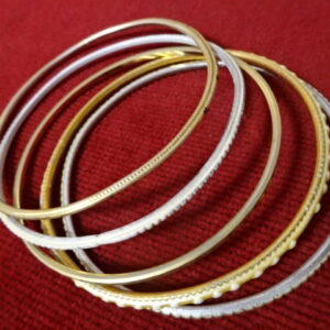 Öt darabos bizsu karperec – réz, alumínium, műanyag – belső átmérője 7 cm. Jókai