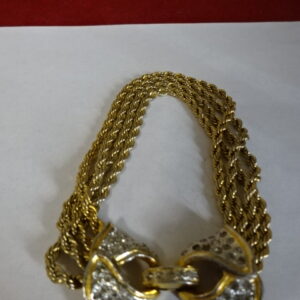 Aranyozott, sodrott, bizsu karperec, négy láncból áll, teljes hossza 18,5 cm. Jókai