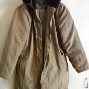 Barna művelúr női kabát steppelt béléssel és csukjával. Jókai.
