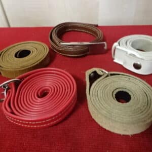 Öt darab női bőr öv, kb. egy cm széles és egy méter hosszú. Jókai