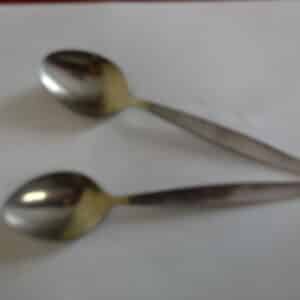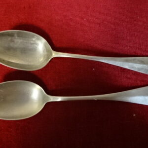 Alpakka antik teáskanál, hossza 15,5 cm. Két darab egyben eladó. Jókai