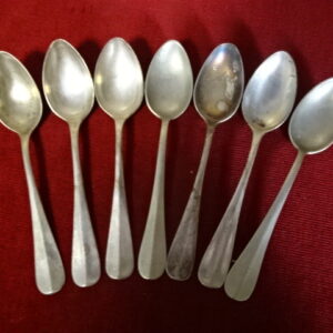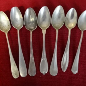 Alpakka antik teáskanál, hossza 14 cm. Hét darab egyben eladó. Jókai