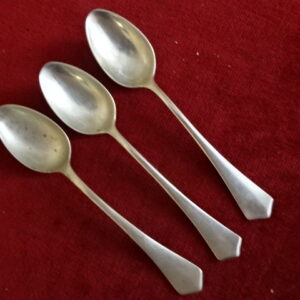Alpakka antik teáskanál, hossza 15 cm. Három darab egyben eladó. Jókai