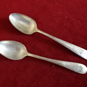 Alpakka antik evőkanál, két darab, hossza 21,5 cm. Jókai