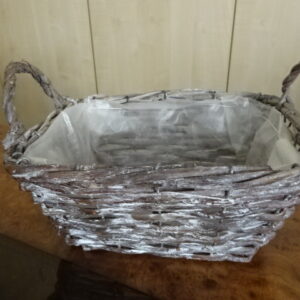 Retro vesszőkosár, müanyag belsővel, felső mérete 21 x 17 cm. Jókai