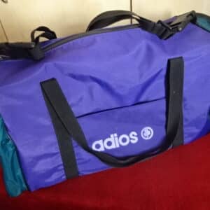 Vászon utazótáska, lila-zöld színű, teljes hossza 55 cm. Jókai.