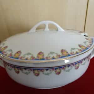 H & C csehszlovák leveses tál, rózsa mintás, antik, felső átmérője 24 x 14,5 cm. Jókai.