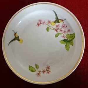 Zsolnay porcelán kistányér, kolibri mintás, kézzel festett. Jókai.