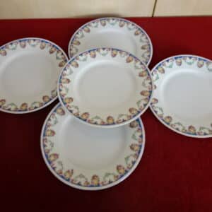 H & C csehszlovák porcelán antik kistányér, öt darab egyben, rózsa mintás. Jókai.