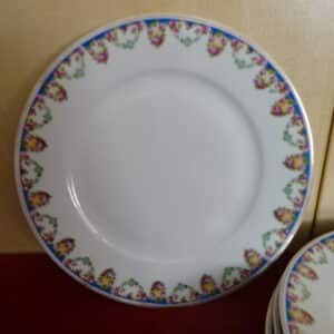 H & C csehszlovák porcelán, antik lapostányér, rózsa mintás, hat darab egyben. Jókai.