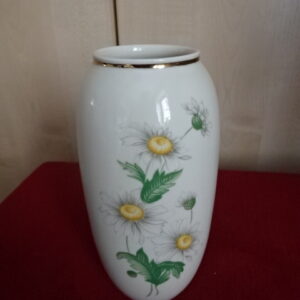 Hollóházi porcelán váza, margaréta mintás, arany szegélyes. Jókai
