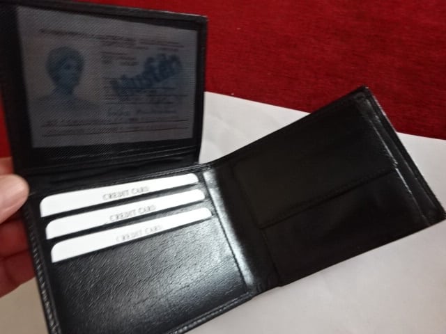 Fekete bőr pénztárca, BOSCH felirattal. Új, eredeti dobozban. Jókai.