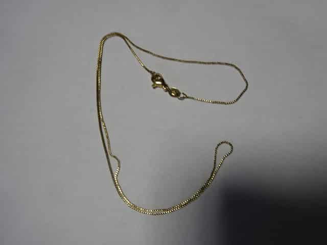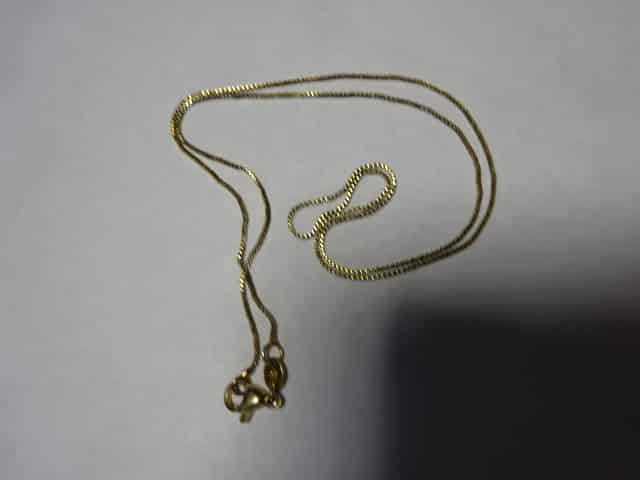 Aranyozott nyaklánc, sd felirattal, hossza 44 cm.