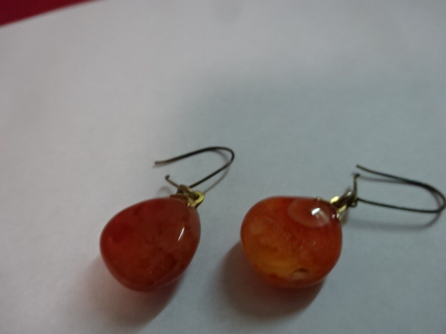 Barnás – pirosas színű fülbevaló, átmérője 1,5 cm. Bizsu.