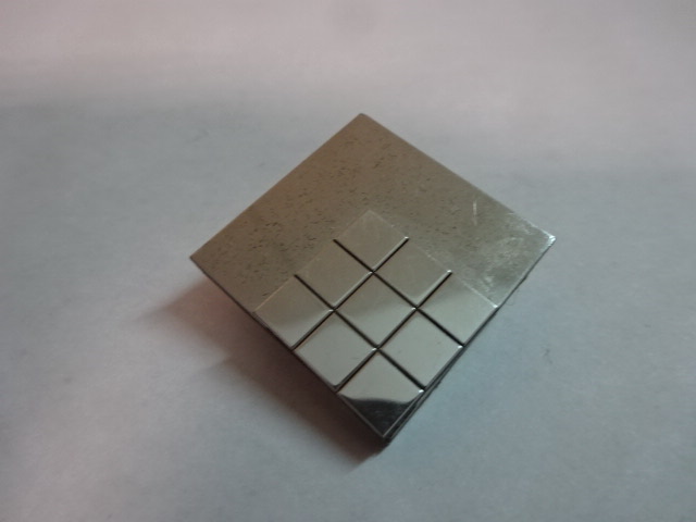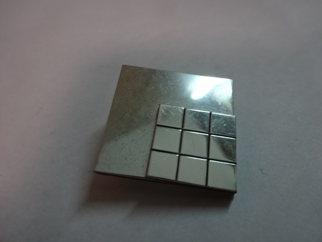Bross, ezüst kockás kitűző, mérete 2,5 x 2,5 cm.