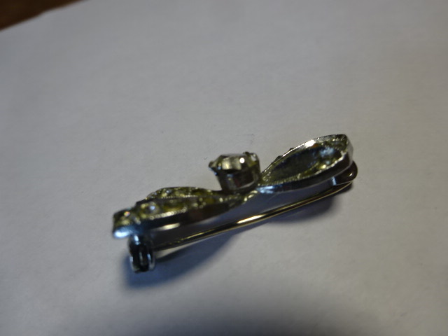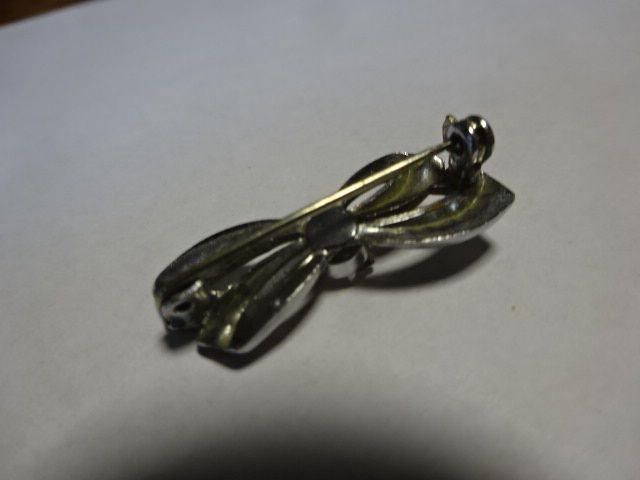 Bross, masni formájú köves kitűző, hossza 3 cm. Jókai