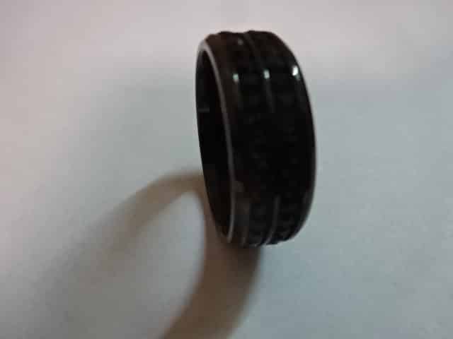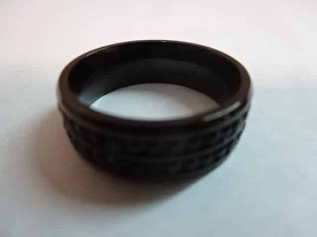Fekete apró köves gyűrű, steel jelöléssel, belső átmérője 2 cm. Jókai