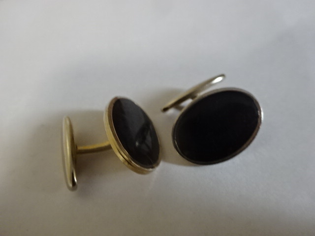Férfi mandzsetta gomb, fekete, ovális. Jókai
