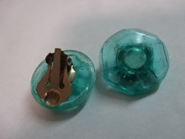 Hatszögletű, kék színű klipsz, átmérője 2 cm. Bizsu.