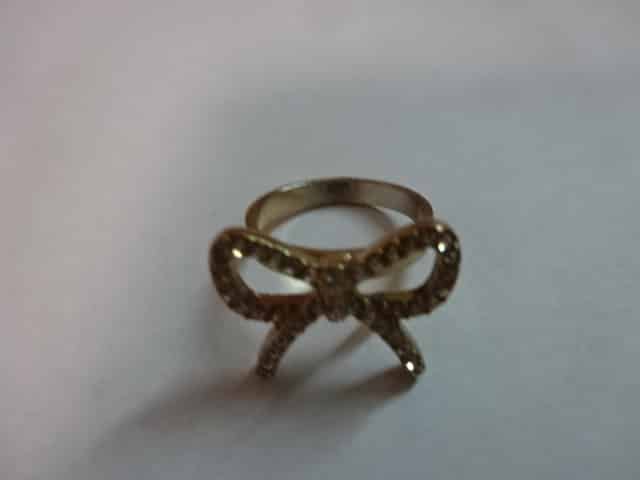 Női gyűrű, bizsu, a masni apró kövekkel kirakva, belső átmérője 1,7 cm. Jókai