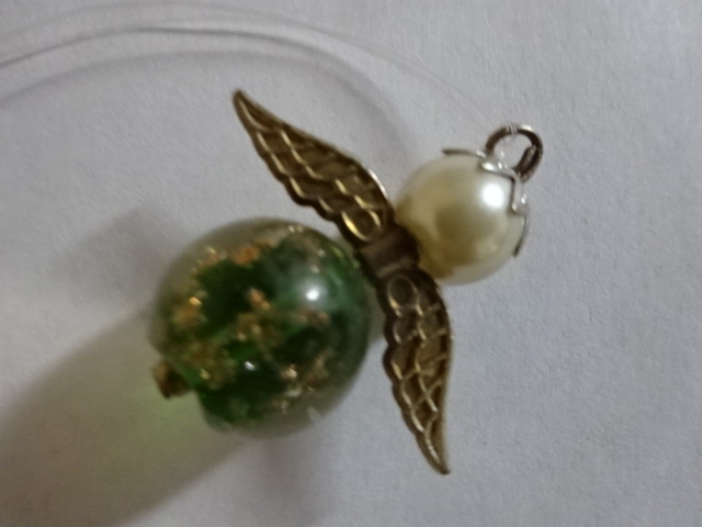 Nyaklánc medál gyöngyből, angyalka forma, magassága 3,3 cm.