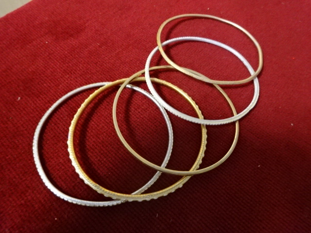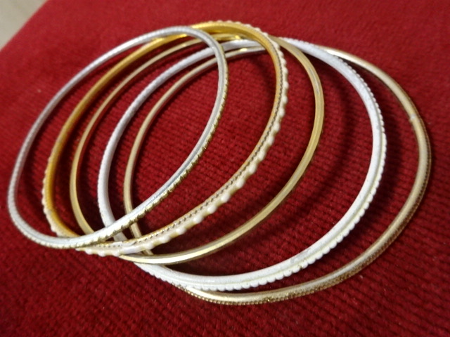 Ötdarabos bizsu karparec, réz, alumínium, műanyag – belső átmérője 7 cm.
