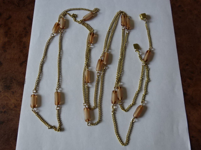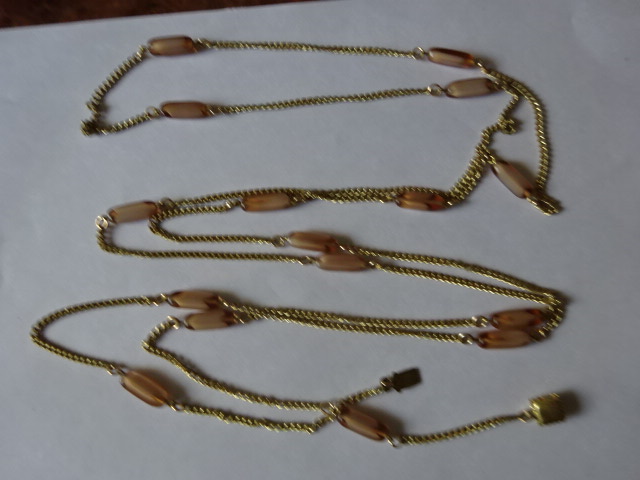 Retro barna köves hosszú nyaklánc, hossza 172 cm. Jókai