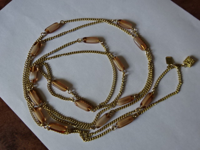 Retro barna köves hosszú nyaklánc, hossza 172 cm.