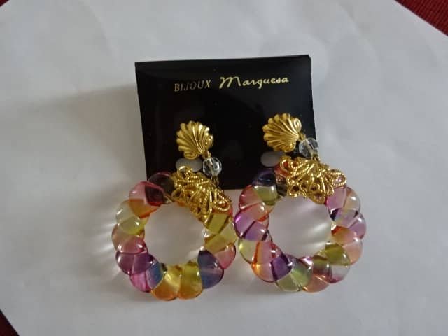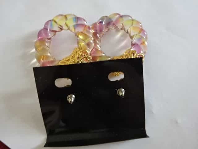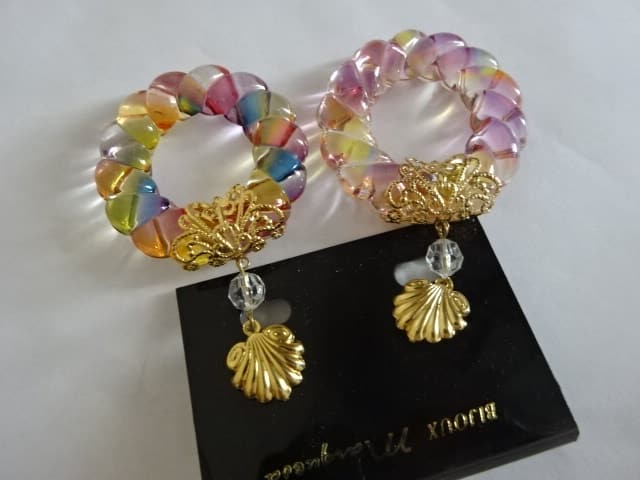 Színes, kerek, bizsu fülbevaló, átmérője 5 cm. Jókai.
