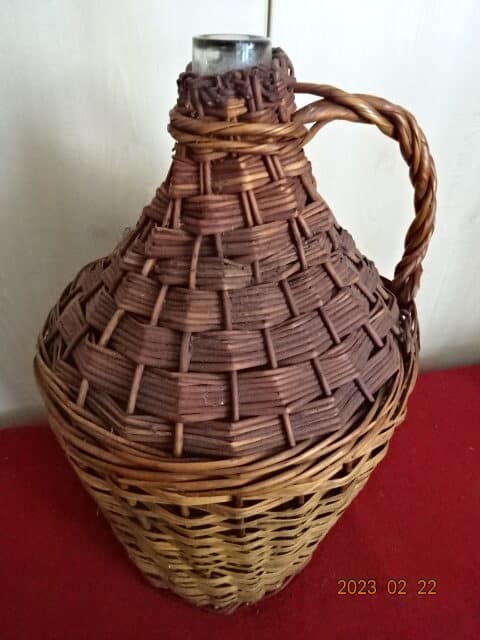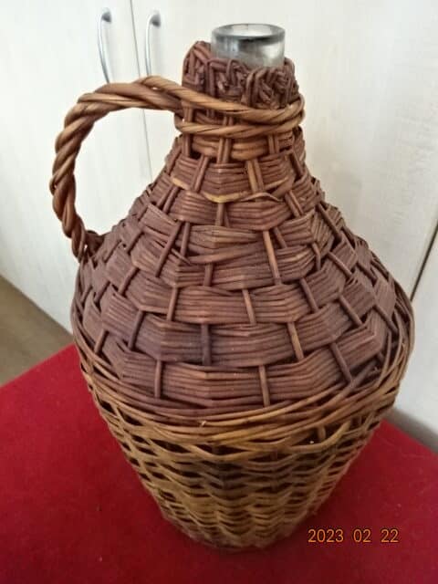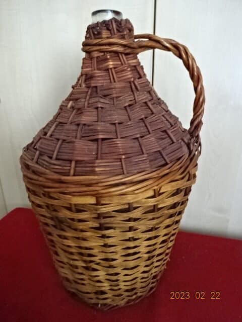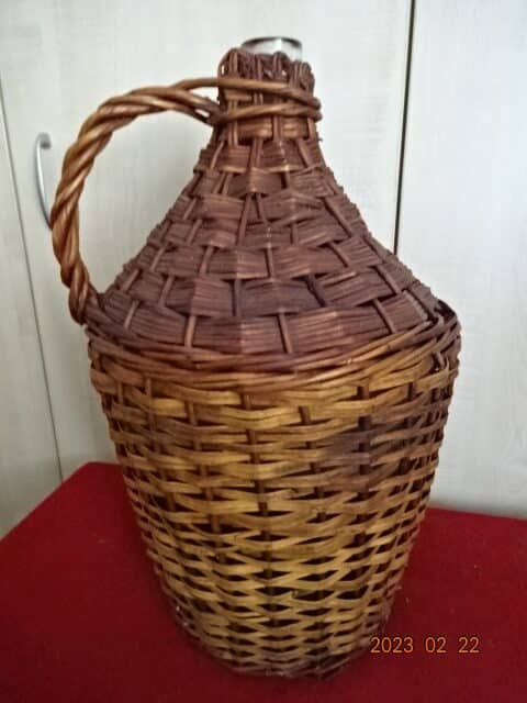 Demizson, 10 literes, vesszővel fonott, füles. Jókai.