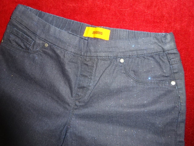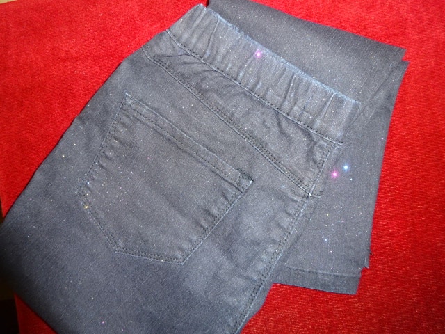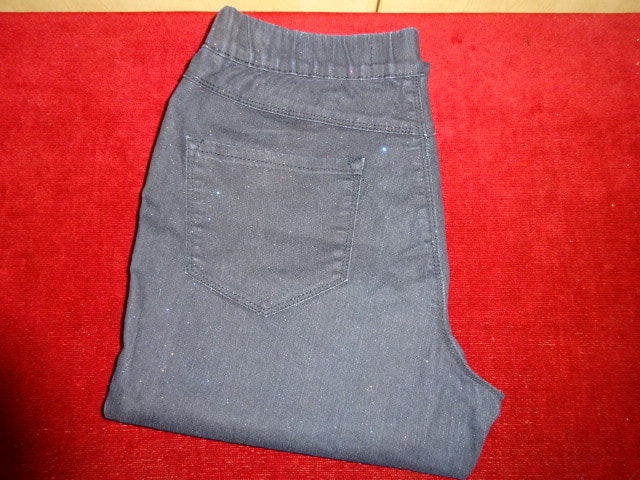 JEGGING fekete vászonnadrág színes csillámokkal, dereka gumis. Mérete 38-as, teljes hossza 96 cm. Alig használt.