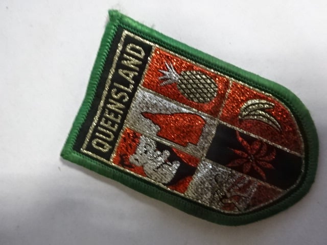 Ausztrália, Queensland címere, gépi hímzés, magassága 8 cm.