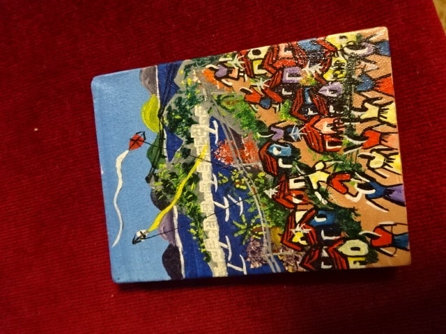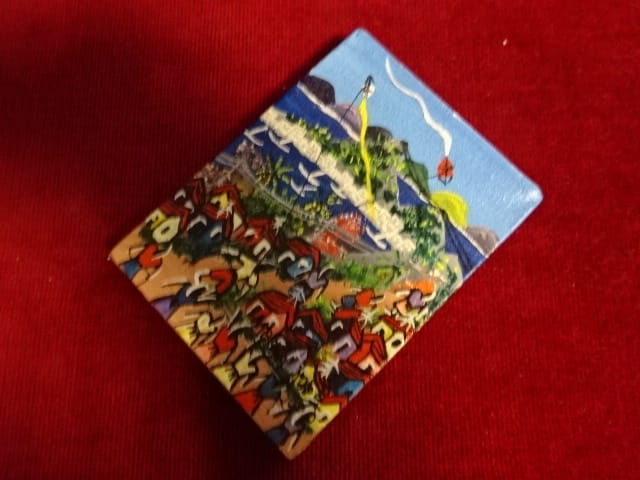 Kézzel festett mini kép, Rio de Janeiro – brazil festő alkotása. Vászonra – kézzel festett tájkép. Méret: 12×9 cm.