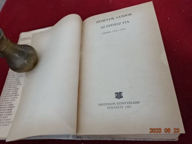 Reményik Sándor: Az építész fia – Versek 1919-1941. Kiadva Bukarest, 1983.