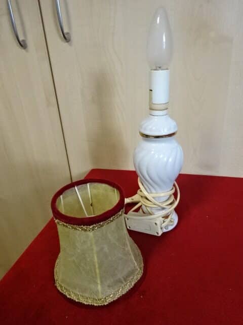Asztali lámpa porcelán lámpatesttel, retro, működőképes. Teljes magassága 35 cm.