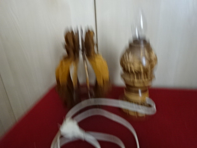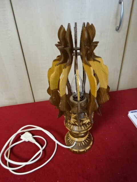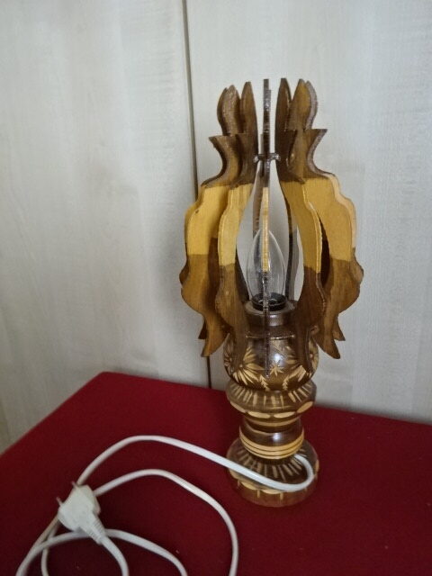 Erdélyből származó, kézzel faragott asztali lámpa, magassága 37 cm.