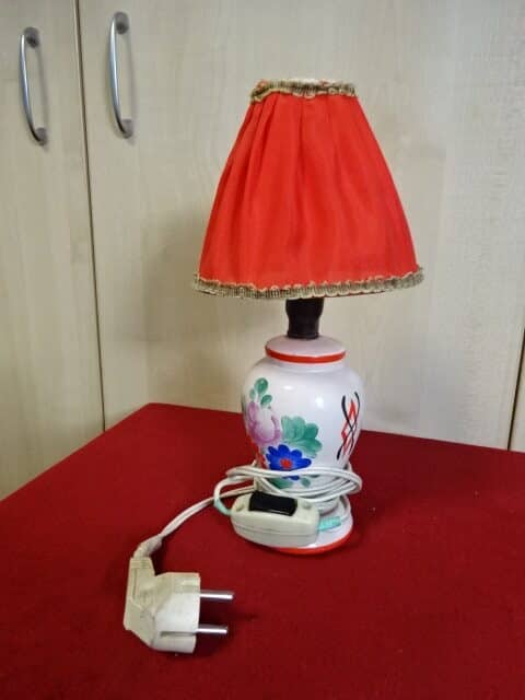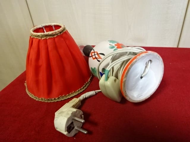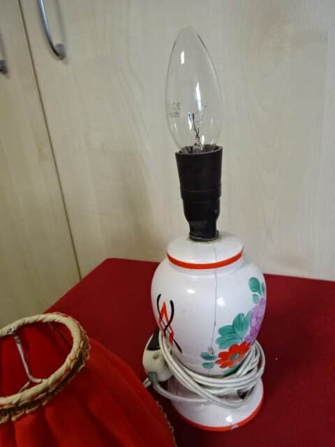 Mázas kerámia asztali lámpa, teljes magassága 30 cm. A kerámia kézi festésű, repedt, működő képes.