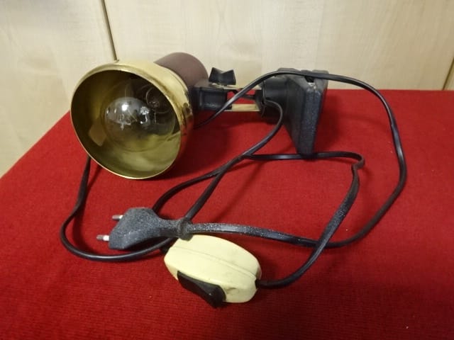Retro olvasó lámpa, csíptetős rögzítésű, hossza 16 cm.