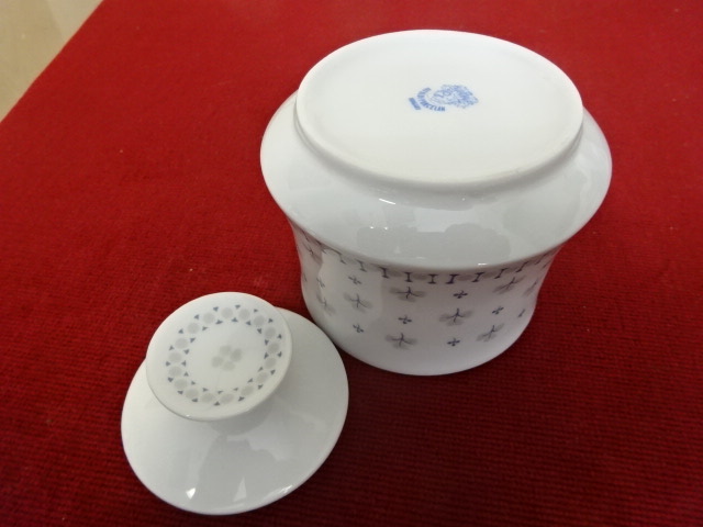 Alföldi porcelán cukortartó, kék-szürke petrezselyem mintával. Ritka színezés, állapota új. Vitrinben tartott darab. Kód: 250