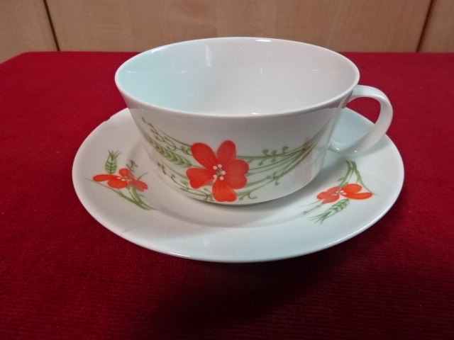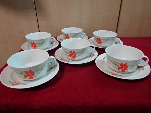 Alföldi porcelán, pipacs mintás teásbögre alátéttel, hat darab. Jókai