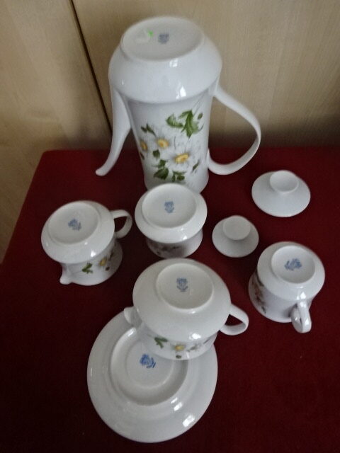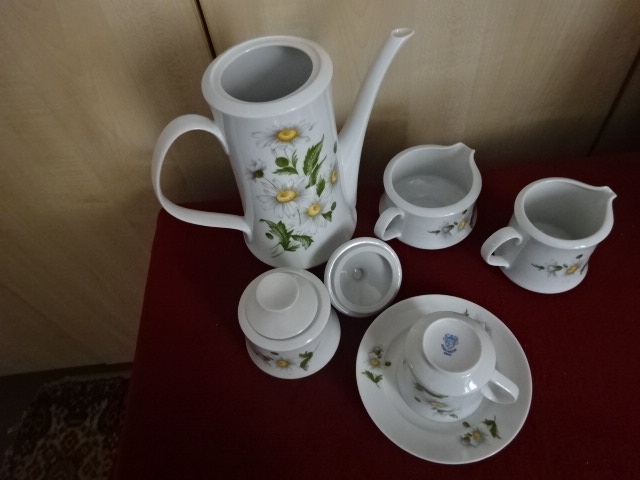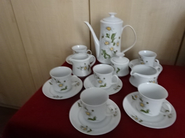Alföldi porcelán teáskészlet, margaréta mintás,16 darabos. Jókai