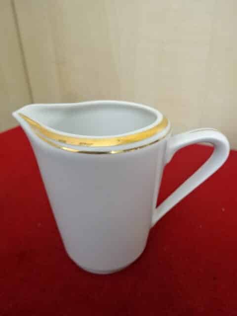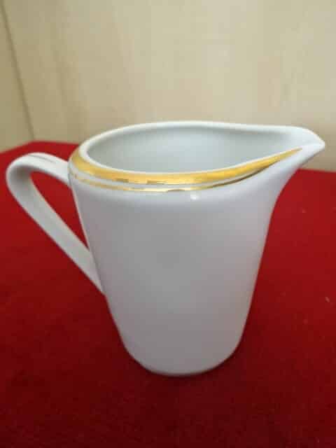 Alföldi porcelán tejkiöntő, arany szegélyes, magassága 7,5 cm. Jókai.