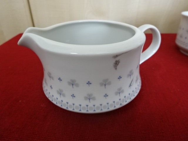 Alföldi porcelán tejkiöntő, kék-szürke petrezselyem mintával, magassága 7 cm. Jókai