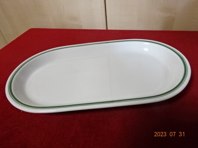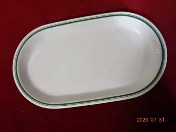 Alföldi porcelán, zöld csíkos húsos tál. Mérete: 32,5 x 18,5 x 3 cm. Alig használt.