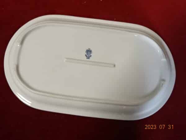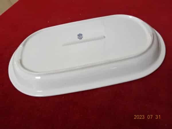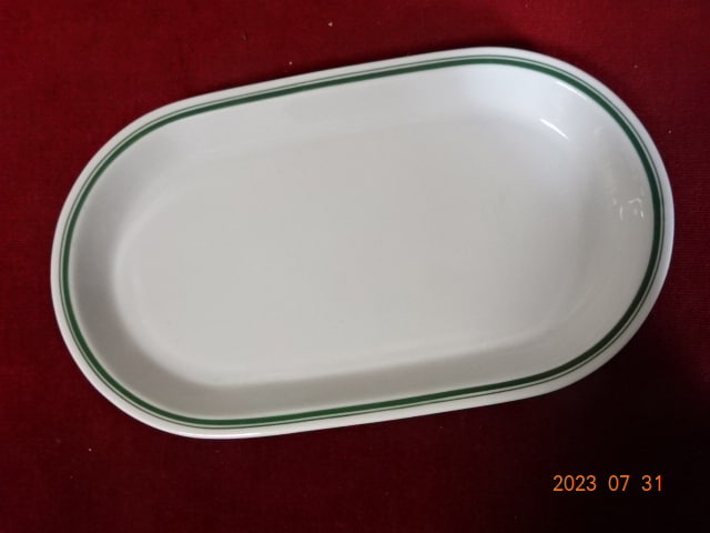 Alföldi porcelán, zöld csíkos húsos tál. Mérete: 32,5 x 18,5 x 3 cm. Jókai.