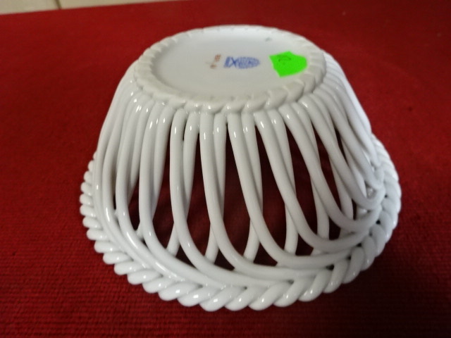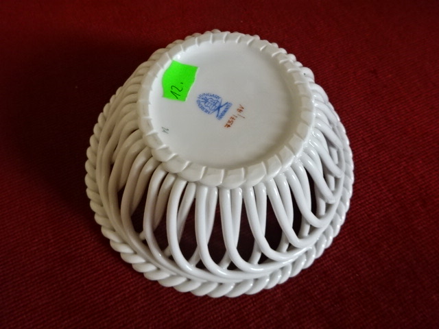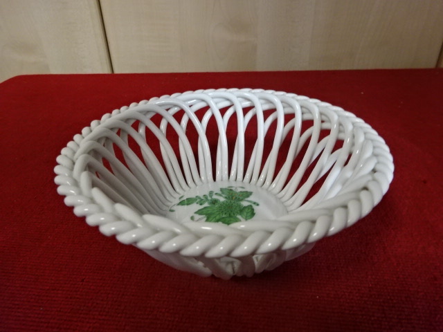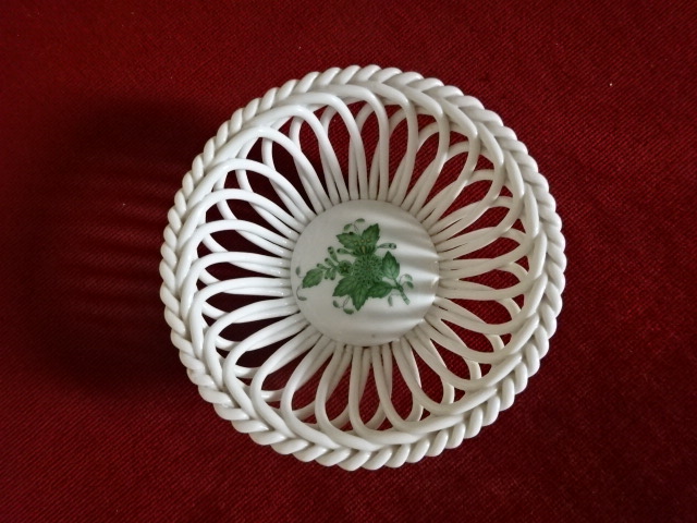 Herendi porcelán asztalközép, fonott kosár Apponyi mintával, felső átmérője 13 cm, magassága 5 cm. 7371/AV. Kód: 4000